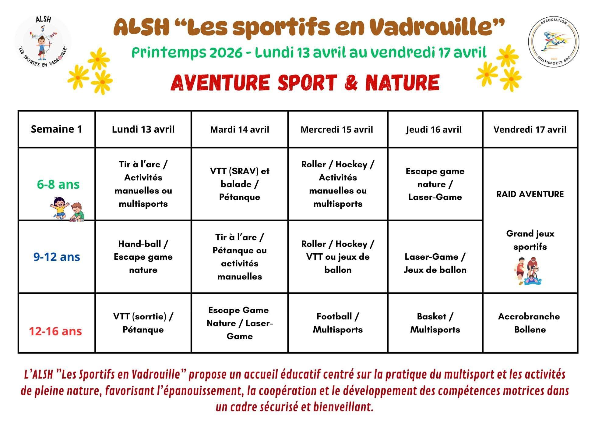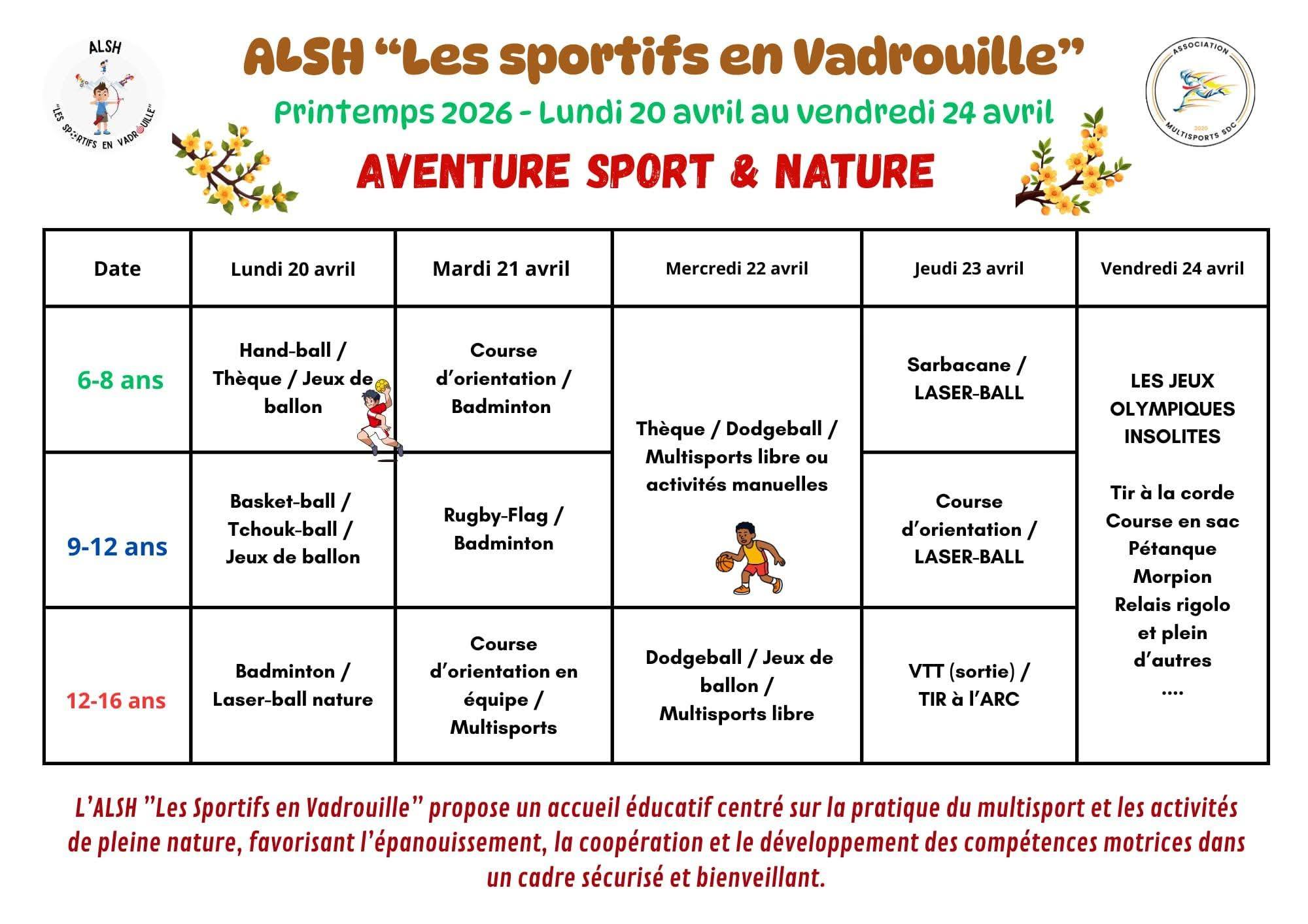 Depuis mars 2024, notre association est également un ALSH (accueil de loisirs sans hébergement) : « Les sportifs en Vadrouille ».